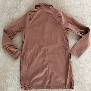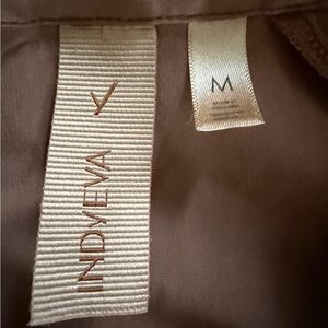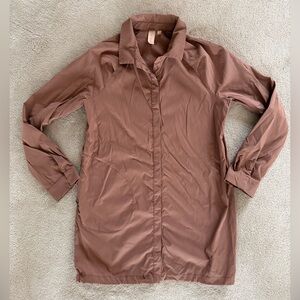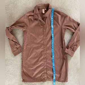 Elevate your style with this elegant brown dress. Snaps up the front. 1 zippered pocket. Perfect for any occasion, this dress offers both comfort and sophistication. Sz M