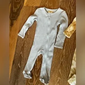 Spearmint love blue and gold tie dye organic cotton waffle sleeper zip onsies nwot