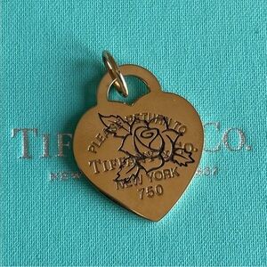 Tiffany large rose gold RTT etched rose heart charm