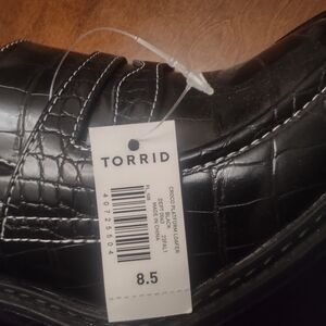 Stylish black loafers with chunky heels. Croc-embossed texture. Perfect for a bold look.