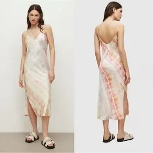 Allsaints Melody Marea Silk Blend Slip Dress in Rainbow Pink US 8 $299