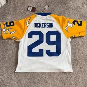 Mitchell & Ness Dickerson Yellow and White Jersey with Blue Number 29 Rams