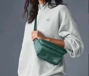 Alo Yoga Explorer Fanny Pack in Winter Ivy. This versatile belt bag features a sleek design with multiple zippered compartments for organized storage. Constructed from durable, high-quality fabric in a beautiful deep green ivy hue. Features an adjustable strap for waist or crossbody wear and iconic Alo logo detailing on the front. Brand new with tags attached. Perfect for yoga, travel, or everyday essentials.