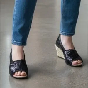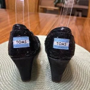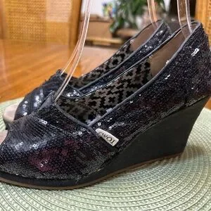Toms Black Sequin Wedges