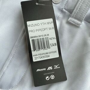 Mizuno Youth Select White Piped Baseball Pants Red Piping Straight Leg - Kids US