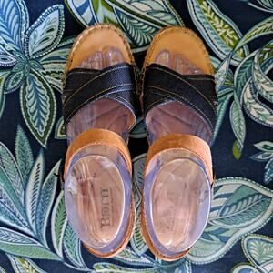 Born Payette Espadrille Wedge Heel Sandal Sz 8 Navy Brown Preppy Beachy Boho