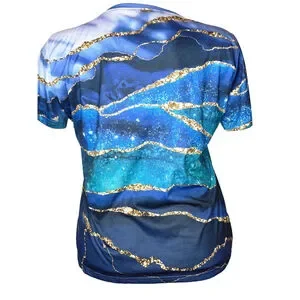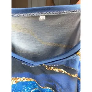 Women's Unbranded Blue Gold Abstract Short Sleeve Tee 4X