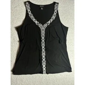White House Black Market Womens Sz M Black White Floral Sleeveless Tiered Blouse