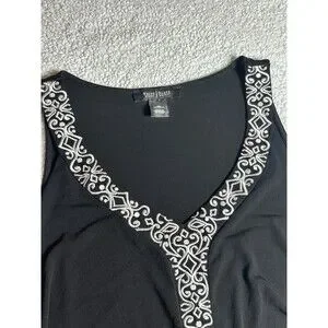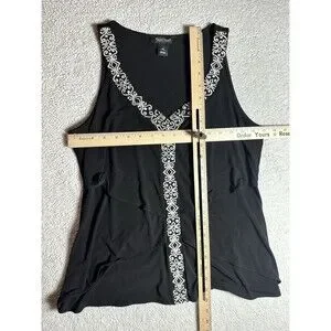 The White House Black Market Women's Sz M Black White Floral Sleeveless Tiered Blouse is a stylish and versatile top perfect for various occasions such as travel, parties, or casual outings. Made from a blend of polyester and spandex, this blouse features a flattering V-neckline, embroidered accents, and a pullover closure for easy wear. The black and white floral pattern adds a colorful touch to the design, making it a great choice for the summer, fall, or spring seasons. Easy to care for with its machine washable material, this blouse is a must-have for any woman's wardrobe.