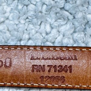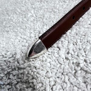 LL Bean Vintage 1990 Skinny Western Leather Belt,Gold tone buckle and Tip, 30