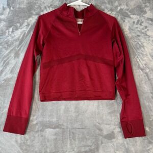 PINK Victoria's Secret Maroon Seamless Qtr Zip Pullover Thumbhole Cropped M/L