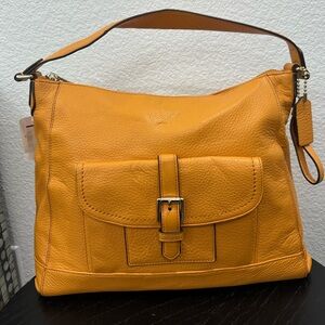 Coach Pebbled Leather Hobo Shoulder Bag – Mustard/Orange – NWT