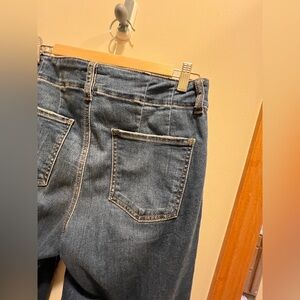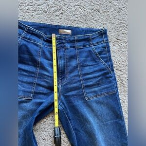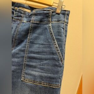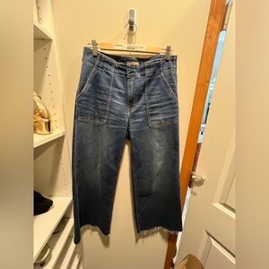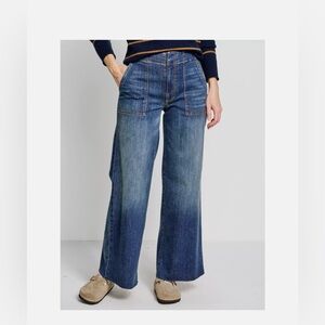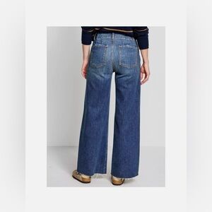 High rise - wide leg denim. First few pics are stock photos. Color/wash is as shown on hanging/measurements pics.