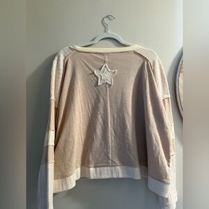Elegant cream top with ribbed texture. Soft and comfortable fabric.