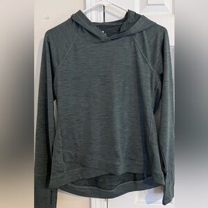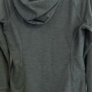 Comfortable heathered gray hoodie. Ideal for exercise or leisure. Size small
