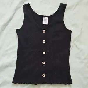 Chic black ribbed tank with button accents. Ideal for everyday wear, layering or vacation.