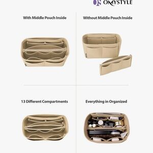 Keep your handbag tidy with this beige organizer. Multiple compartments for easy storage.