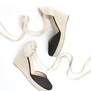 NEW! Espadrille wedges black tie lace up heels platform sandals casual size 10