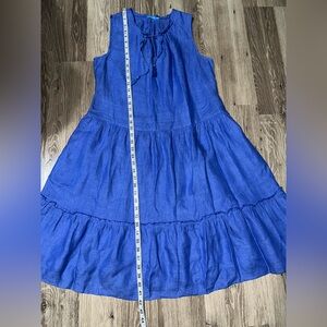 J MCLAUGHLIN Christa Blue 100% Linen Tiered Dress Size Medium Sleeveless Resort