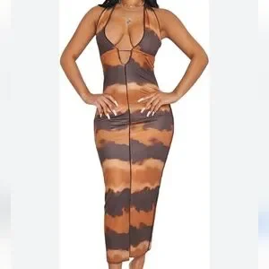 Sexy Shein bodycon dress with a brown and black tie-dye pattern. Perfect for a night out 💃🏽 Tag is gone but NEVER WORN!