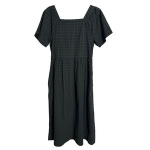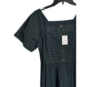Madewell NI639 Windowpane Puff Sleeve Midi Dress Dark Green XS NEW