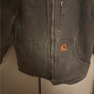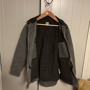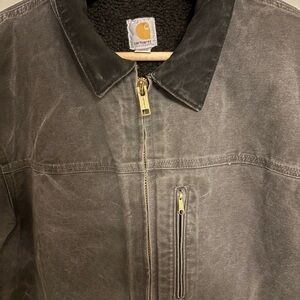 Carhartt C61 Duck Canvas Jacket Size Large Gray Sherpa Lined Workwear Faded