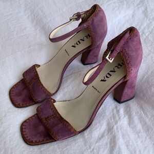 Vintage Prada Suede Stitch Square Toe Sandal Block Heels Purple