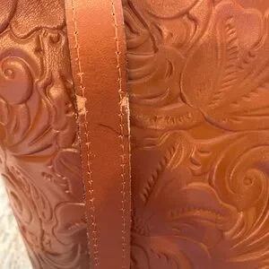 Absolutely stunning Patricia Nash embossed leather tote in rich cognac brown with signature tooled floral detailing.