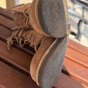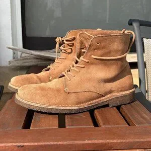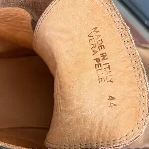 As you can see from the pictures, they have been worn a bunch of times. I love it, super cool made in Italy Chukka Boots. Unfortunately, I bought them too small this time. They are marked 44 EU, they fit a 11 US, I am 11.5 US, they don't do half sizes, beautiful leather, and have a comfortable sole. I protected the heels with a thin layer of shoe goo to make them last longer (cobbler is my hobby) difficult to notice when you put them on. from a house smoke & pet free.