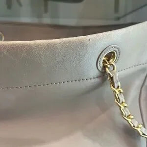 Chic Tory Burch tote in light pink. Features quilted design and gold accents.