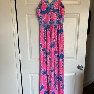 NWOT Lilly Pulitzer Taryn Maxi dress in blue & pink pineapple print 6 M