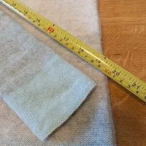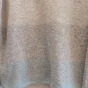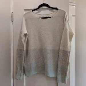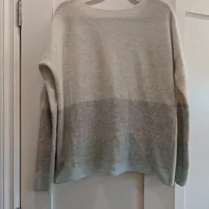 Gorgeous ombre sweater. Goes from pale oatmeal/ grey to medium grey to seafoam at the bottom. No snags,non smoking home.
