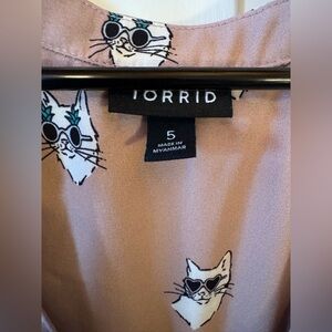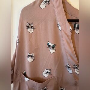 Embrace a playful style with this woman’s shirt featuring a charming cat print. The soft pink hue adds a touch of elegance to your casual wardrobe.