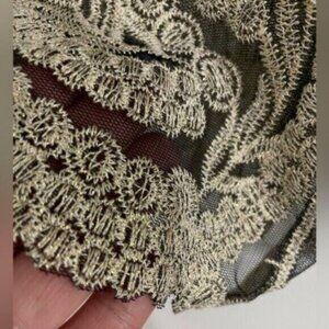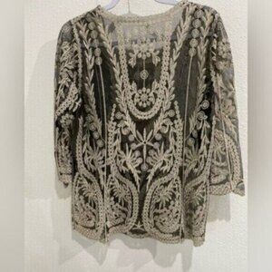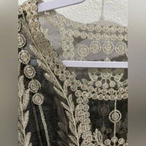 Boho Gold Metallic Neutral Lace Festival Embroidered Semi Sheer Top