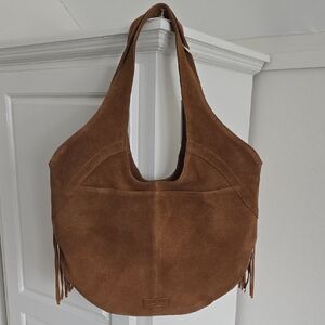 Lucky Brand Brown Suede Fringe Hobo Bag NWT