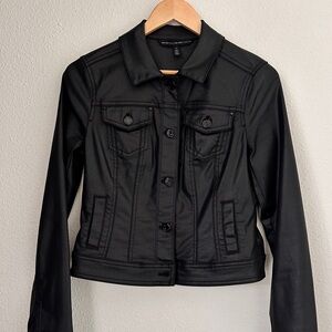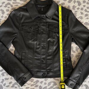 This structured modal jacket which resembles faux leather from White House Black Market is a versatile layering piece that adds instant polish and edge to any outfit. With its clean lines, button‑up front, and utility‑inspired pockets, it’s perfect for both casual and elevated looks.