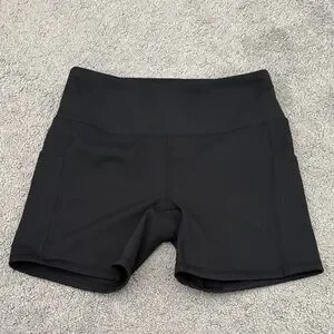 Stay comfortable and stylish with these women's black athletic shorts. Perfect for workouts or casual wear. Side pockets. In excellent condition.