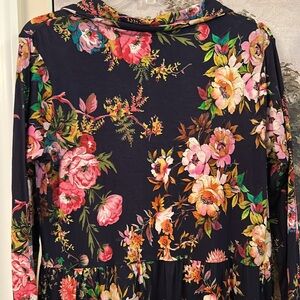 Elegant floral maxi dress featuring vibrant colors and convenient pockets. Perfect for any occasion. New with tag. Navy floral. Truly stunning. Lightweight and perfect for Spring! Lots of stretch! Anthropologie
