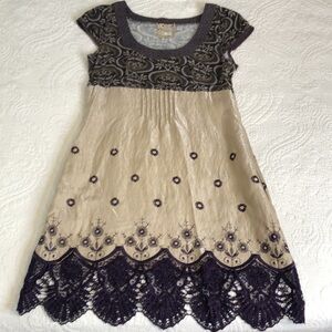 CONTAINER Woman Short Sleeve Boho Embroidered Lace Tan/Purple Dress Size 36 (S)