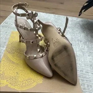 Stylish strappy heels with studded accents. Perfect for adding edge to any outfit. Great condition. Size 7.5. Comes with extra heel tips.