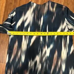 Chic midi dress with a striking pattern. Features short sleeves, a relaxed fit and back zipper. Ideal for versatile styling.
