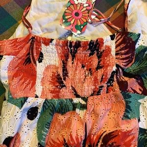 Stunning floral maxi dress by Anthropologie. Features vibrant red flowers on a white background. Perfect for any occasion.
