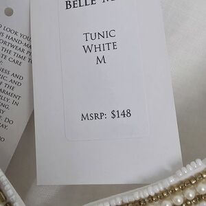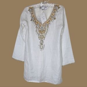 NEW Belle Mar Marena Sol White 100 %Linen Tunic Gold Pearl Beaded M