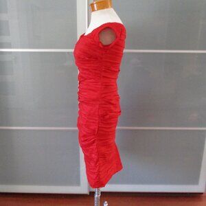 Alex Evenings Cap Sleeve Red Gathered & Ruched Cocktail Dress