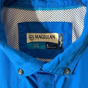 Magellan Outdoors Boy Mag Wick Angler Fit Shirt | Blue | Short Sleeve | Size L