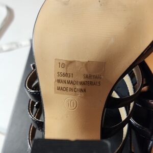 These black heels feature a pointed toe and a striking geometric strap design, exuding sophistication and modernity. The sleek stiletto heel enhances their elegance, making them perfect for formal occasions.