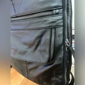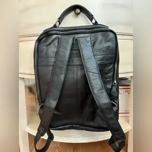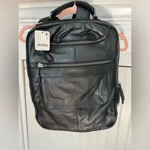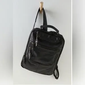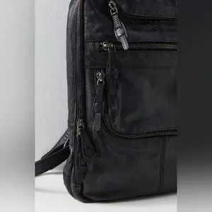Carry it all in this classically cool leather backpack featured in a slouchy design with exposed zipper pockets and a cracked, distressed finish.