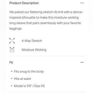 NWOT Vuori Black Long Sleeve Pose Scoop Neck Top