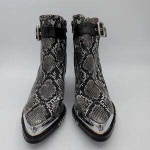 Jeffrey Campbell Verdant M Snakeskin Leather Ankle Boots Grey Black Womens 9