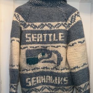 Handmade Knitted Vintage wool Seahawks zip up cardigan sweater
